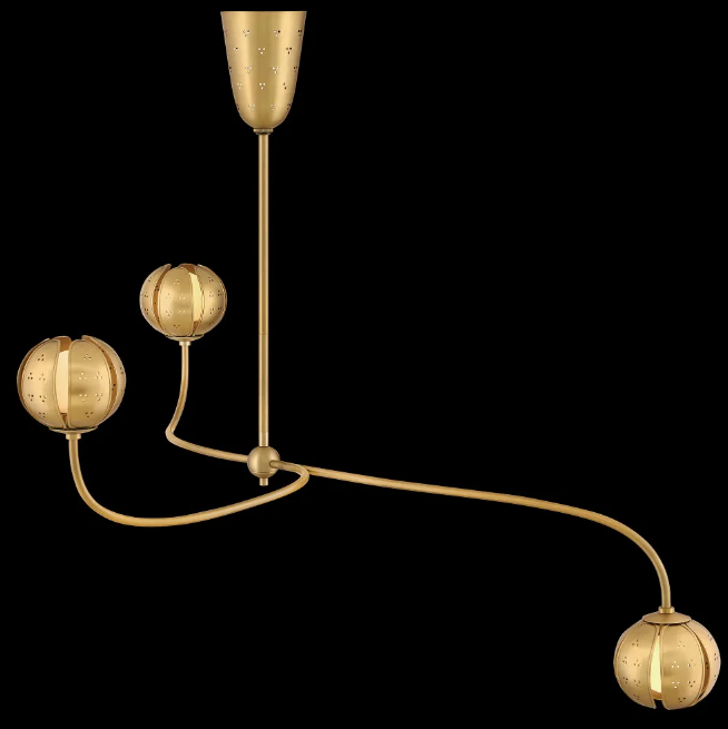 A work of luminary art, Anthos elevates its floral-inspired form with alluring illumination. Raised edge details and distinct perforations accentuate each blossom crafted from solid unlacquered brass petals. Radiant LED lamps enveloped by blown etched opal glass transform the surrounding space with a captivating interplay of light and shadow. Finish: Unlacquered Brass Width: 54" Height: 21.75" Glass: Etched Opal Material: Brass