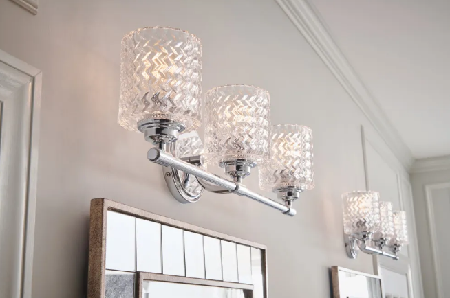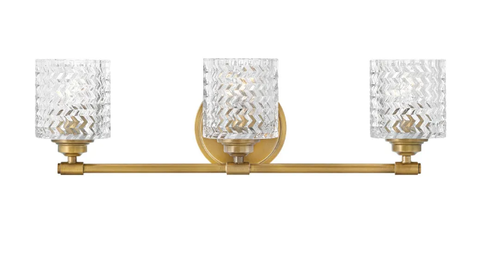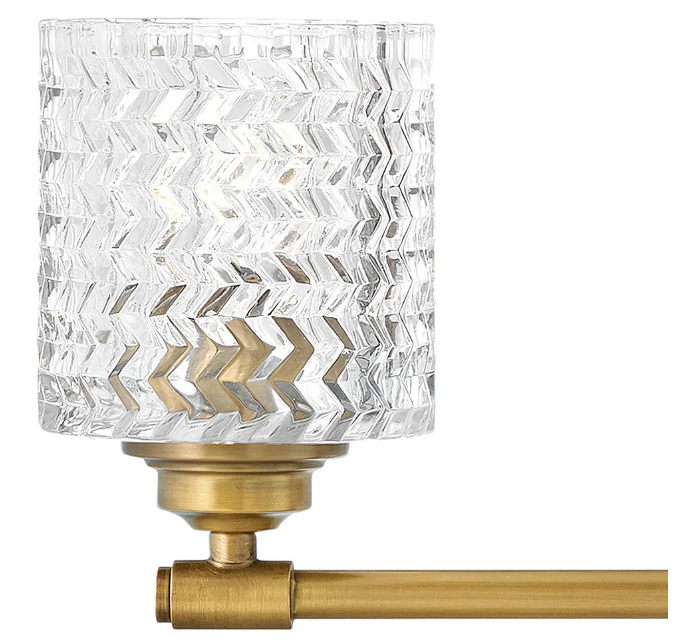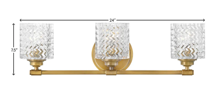 Traditional elegance with a modern edge defines Elle’s graceful design. A rich, chevron cut, clear glass is the dramatic focal point, complemented by a gleaming Chrome finish. The softly rounded steel back plate is finished with luxe stepped detailing to complete the design. Available in a Heritage Brass finish as well.