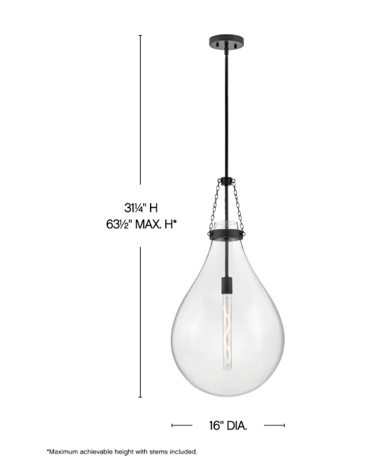 - Includes (1) 6" stem and (2) 12" stems to customize hanging height