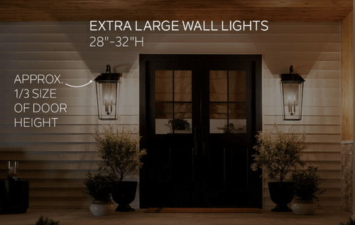 - Choose fixtures about 1/4 to 1/3 the height of your door and hang them around 6-ft from the ground